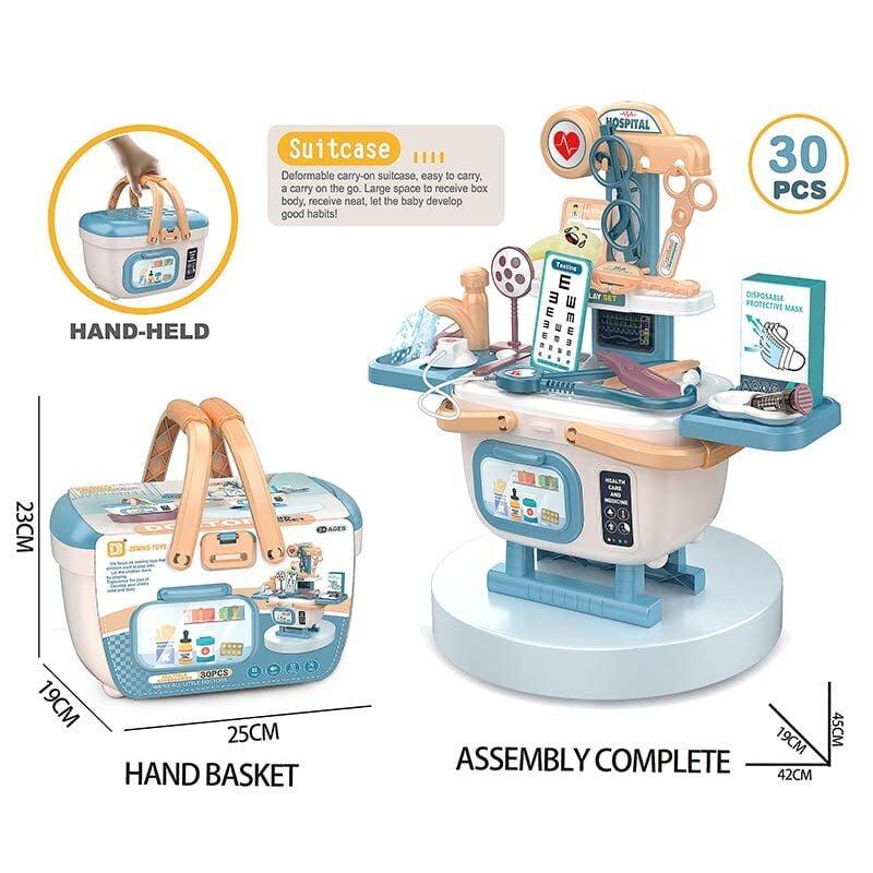 Маленький лікар тепер може не перейматися про те, як йому все спакувати для термінових викликів до маленьких ведмедиків. Але такий бокс не тільки може зручно зберігати всі необхідні для огляду інструменти, але й легко перетвориться на стіл, з яким легко провести консультацію для хворого та проаналізувати його стан. А завдяки різномаїттю медичних інструментів можна не обмежувати свою фантазію під час гри та придумувати безліч сценаріїв.